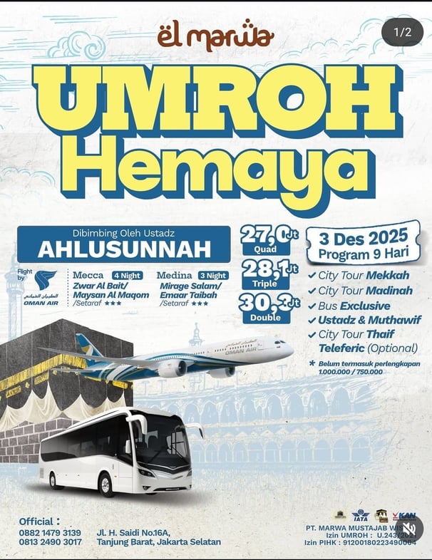 Pilih paket terbaik sesuai waktu, kebutuhan, dan kenyamanan ibadah Anda. Berangkat bersama El Marwa, InsyaAllah tenang dan sesuai sunnah!